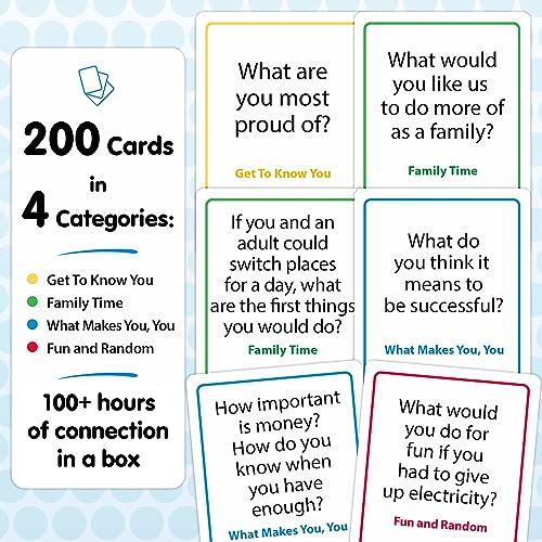- FOR THE WHOLE FAMILY - Each card deck contains 4 categories: Get to Know You, Family Time, What Makes You, You, and Fun & Random. Take turns asking and answering, and don't forget to ask follow up questions to delve even deeper. All content is carefully designed to be family friendly, age-appropriate, and sure to help everyone join in the fun!