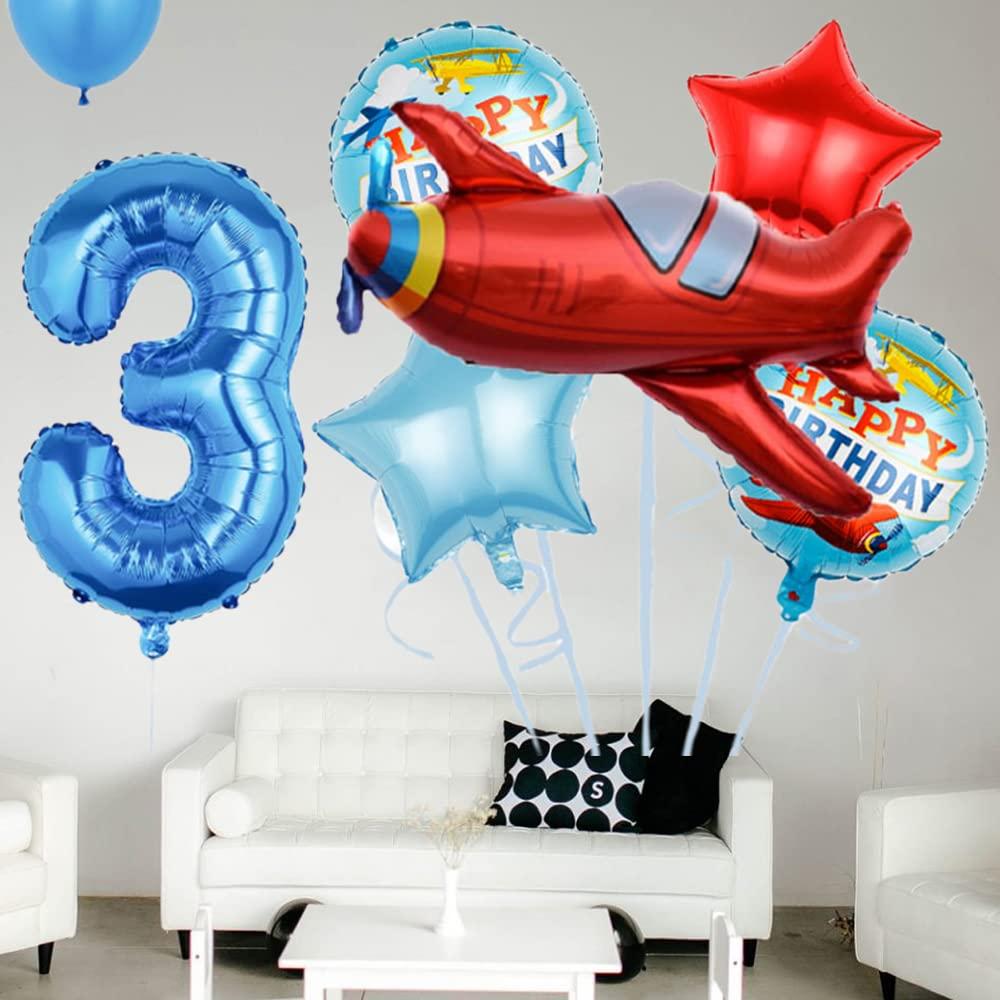 - Airplane party decoration set: The package includes 1 pieces of airplane balloons, 1pcs blue number 3 foil balloon2 pieces blue latex balloons , 2 pieces light blue latex balloons,2 pieces blue latex balloons with white dots,2 pieces birthday airplanes foil balloons,1 pieces blue star shape foil balloons , and 1 pieces red star shape foil balloons.