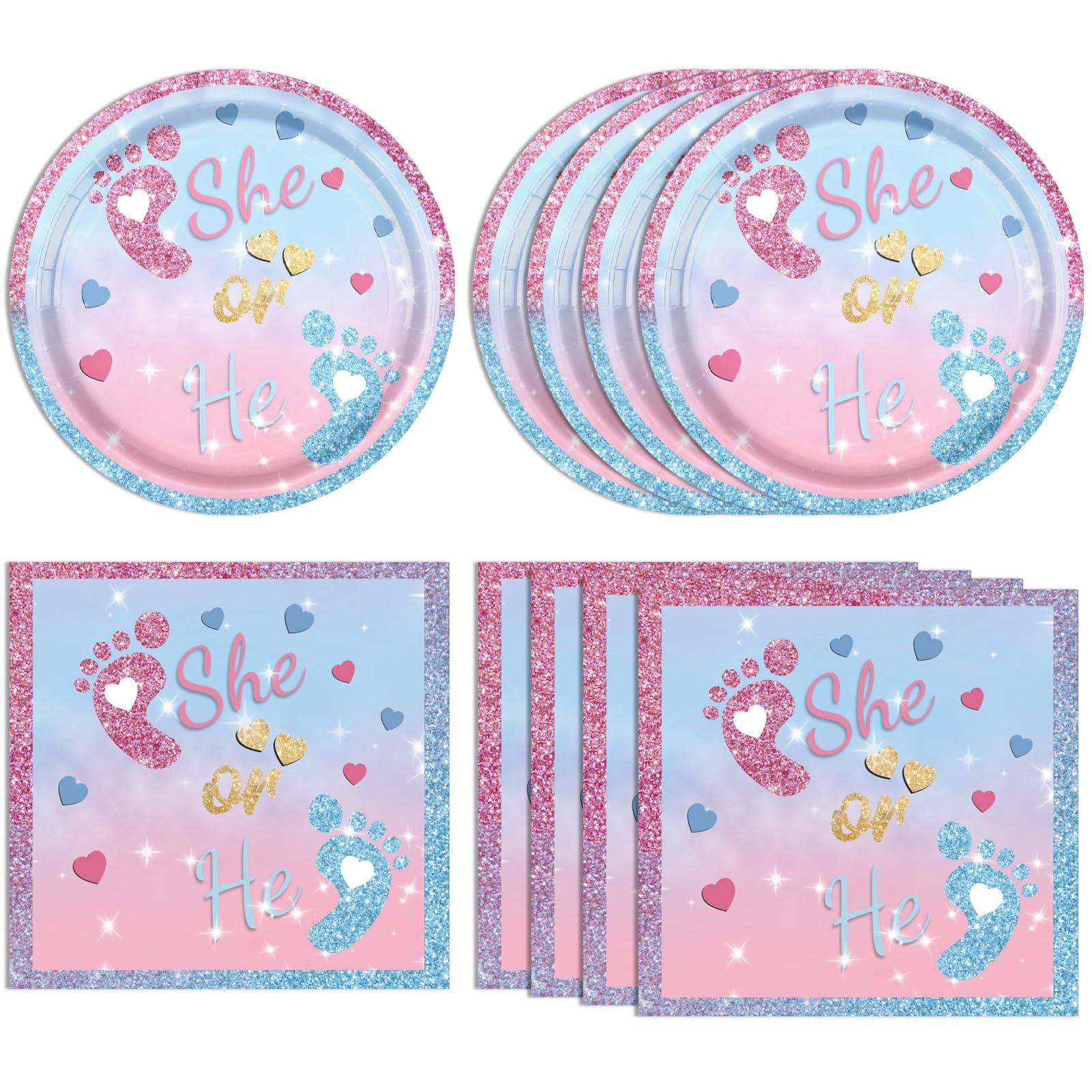 - What Will You Get:Baby gender reveal decorations includes 20 pieces gender reveal plates and 20 pieces gender reveal napkins.The perfect quantity ensures you have a perfect birthday celebration for your baby.