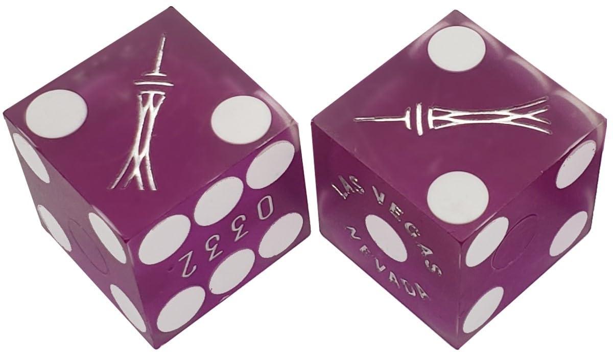 Authentic, table-played at selected Las Vegas / Henderson (Southeast Las Vegas) casino 19mm, six-sided, straight edged Mixed, non-matching serial numbers Design and color may slightly vary as casino rotates lots. Subtle cancel mark(s) which do not affect play Retail packaged in reclosable, clear plastic vial for storage when not in use