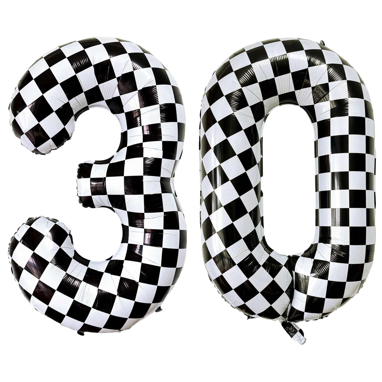 - Package Included40 inch black white checkered number 30 balloons (uninflated), 1 Pcs straw.