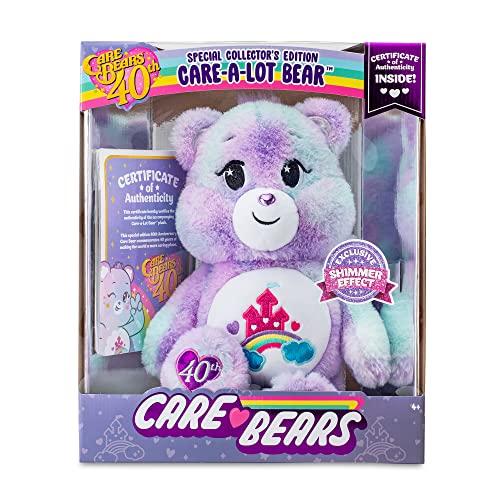 Join Care Bears in celebrating their 40th Anniversary with an ALL-NEW friend: Care-a-Lot Bear! Care-a-Lot Bear is a beautiful, glittery new Bear plush with sweet eyes and a lovable smile. She is the very FIRST Bear to hail from the magical kingdom of Care-a-Lot, and is excited to share her message of kindness and love with you! ALL-NEW BELLY BADGE Care-a-Lot Bear wears a fun and magical new belly badge depicting the kingdom of Care-a-Lot illuminated by a lovely rainbow. Her mission is to spread love and kindness to everyone she meets, and she cant wait to meet you! SOFT HUGGABLE MATERIAL Care-a-Lot Bear has beautiful and unique, shimmery, multi-colored fur and is made with super-soft material. At 14 inches in size, shes also perfect for hugs and snuggles with her new best friends! CERTIFICATE OF AUTHENTICITY Care Bears Care-a-Lot Bear is highly collectible and comes with a certificate of authenticity. Join in the celebration when you take home your Care-a-Lot Bear today!