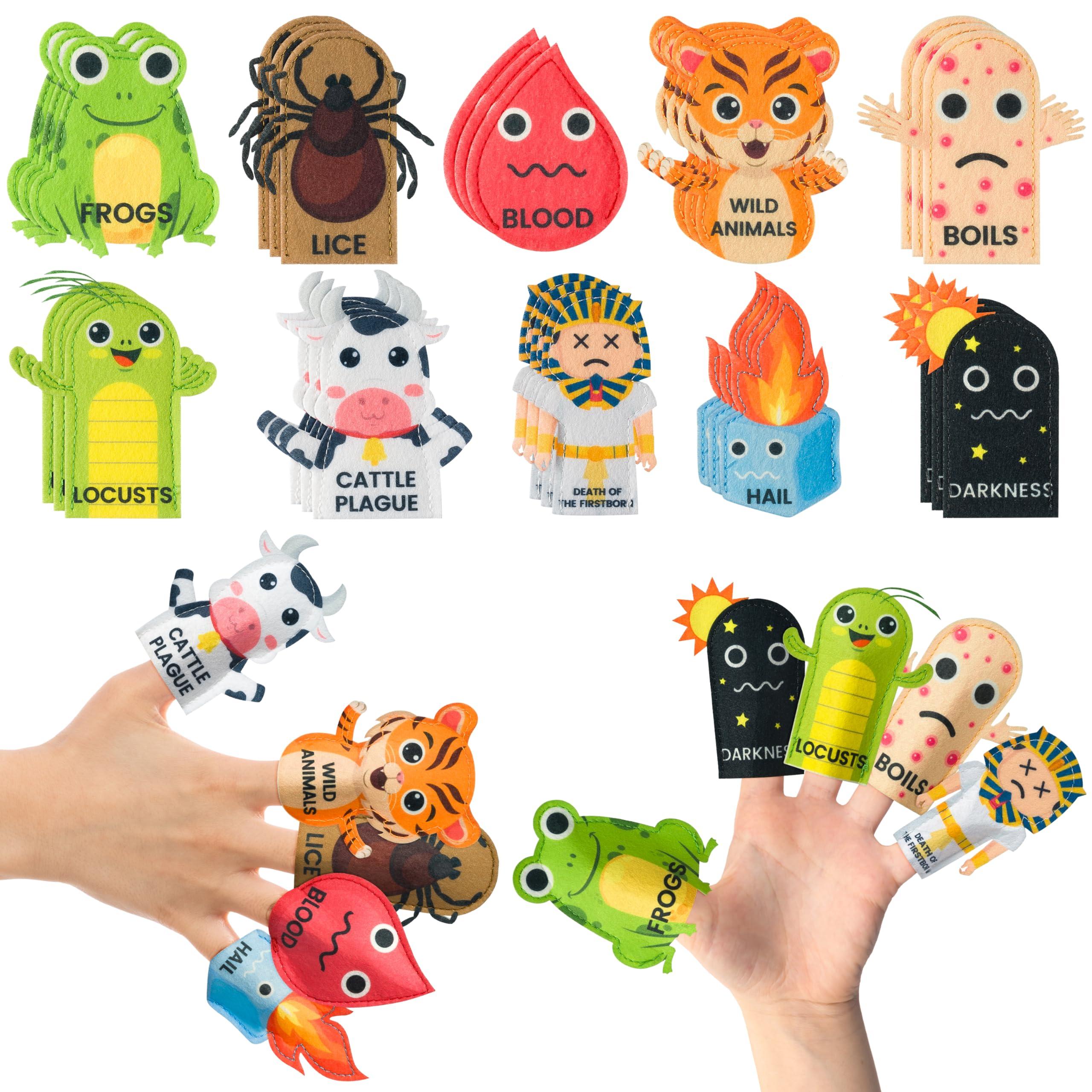 - Value Set: The package comes with 30pcs ten Plague finger puppets (10 styles, 3 of each). Including 10 plague of Blood, Frogs, Lice, Wild Animals, Cattle Plague, Boils, Hail, Locust, Darkness & Death of Firstborn.