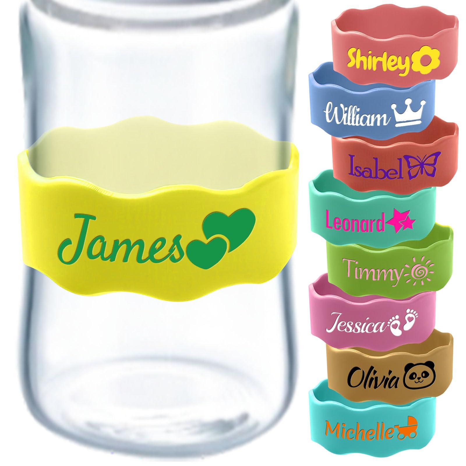 - Colorful Designs: Our customizable Baby Bottle bands come in 9 colors, multiple icons and fonts for you, enter your baby's name to customize unique bottle identification strips. You can also choose more quantities or colors for refills and replacements.