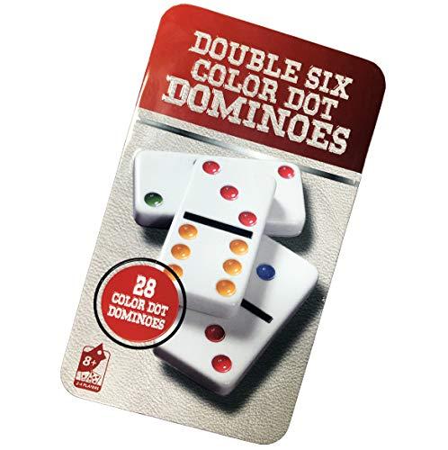 Premium Classic 28 Pieces,Double 6 Color Dot Dominoes Game Set in Tin Case for Boys, Girls, Party Favors and Anytime Use - Up to 2-4 Players