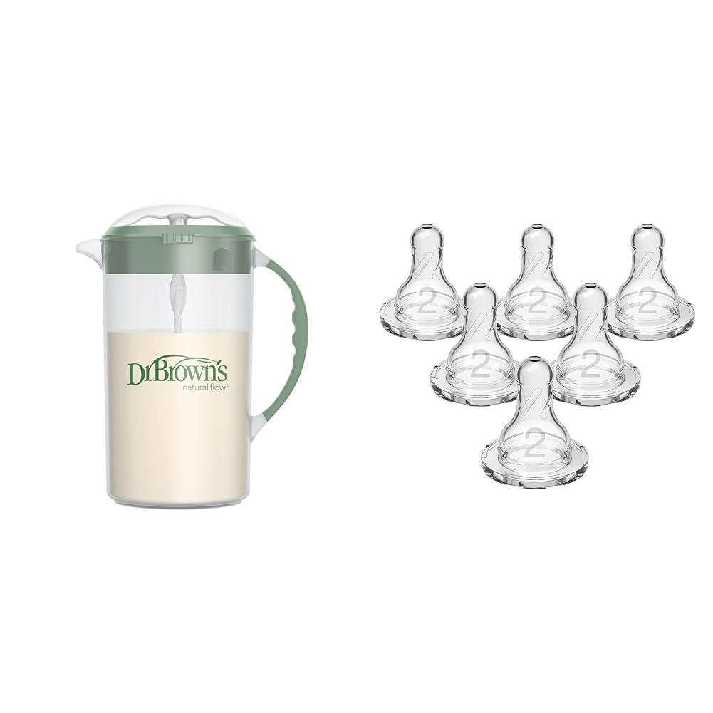 Dr. Brown's Baby Formula Mixing Pitcher with Adjustable Stopper, Locking Lid, & No Drip Spout, 32oz, BPA Free, Olive