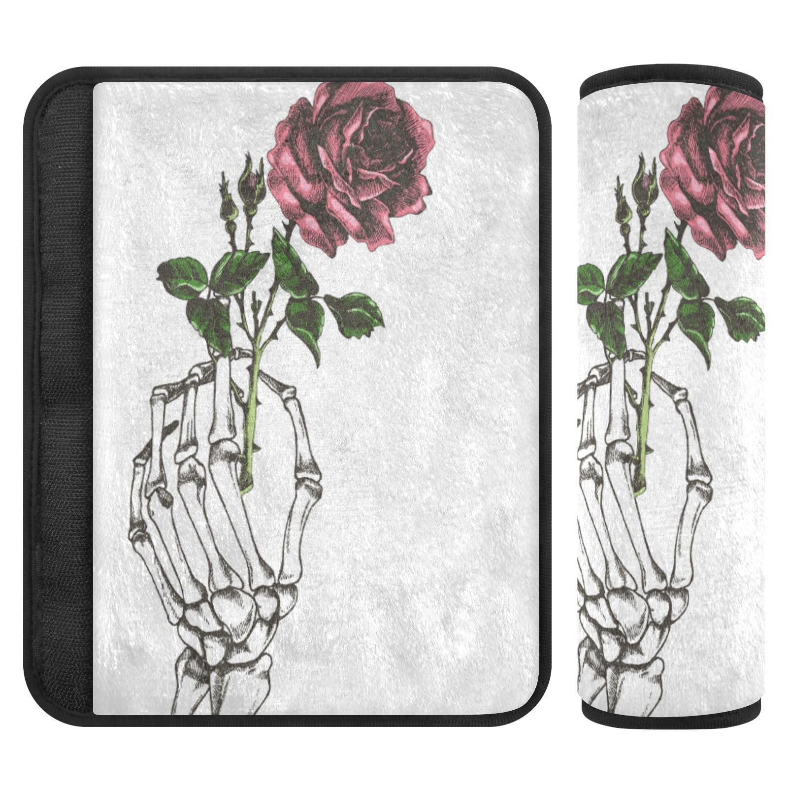Dussdil Hand Skeleton with Flower Seat Belt Covers for Baby Kids Car Seat Strap Shoulder Seatbelt Covers 2 Pack Super Soft Car Seat Neck Cover for Boys Girls Adults Babies 10 in