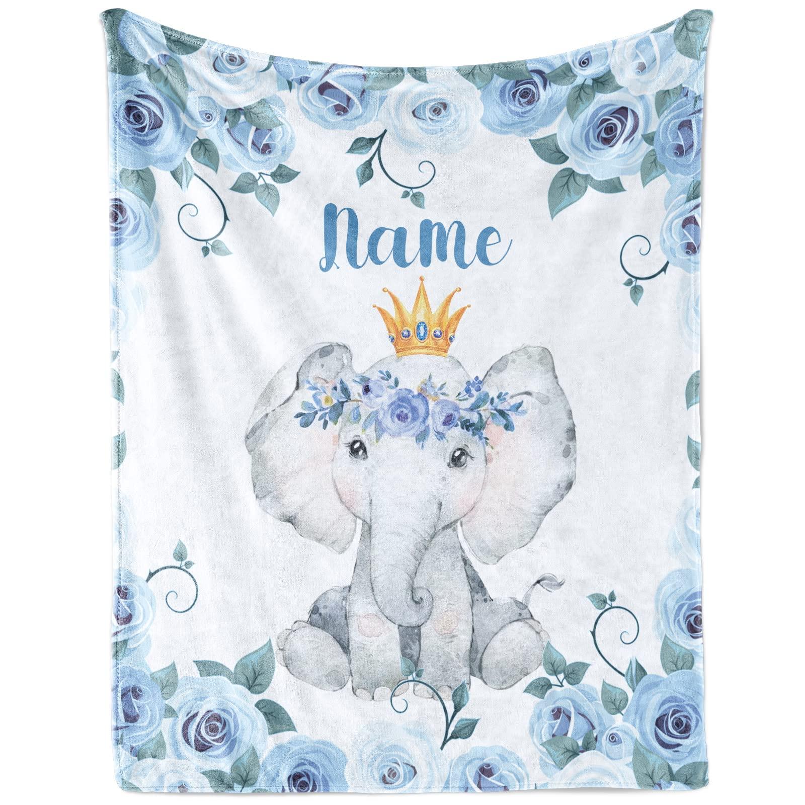 - SOFT GENTLE MATERIAL: KAINSY personalized elephant throw blanket for baby, made of 100% flannel, which is soft and comfortable, light and easy to carry, beautiful pattern is printed on the plush blanket, the baby blanket with custom name is a personalized and cute gift for boys girls