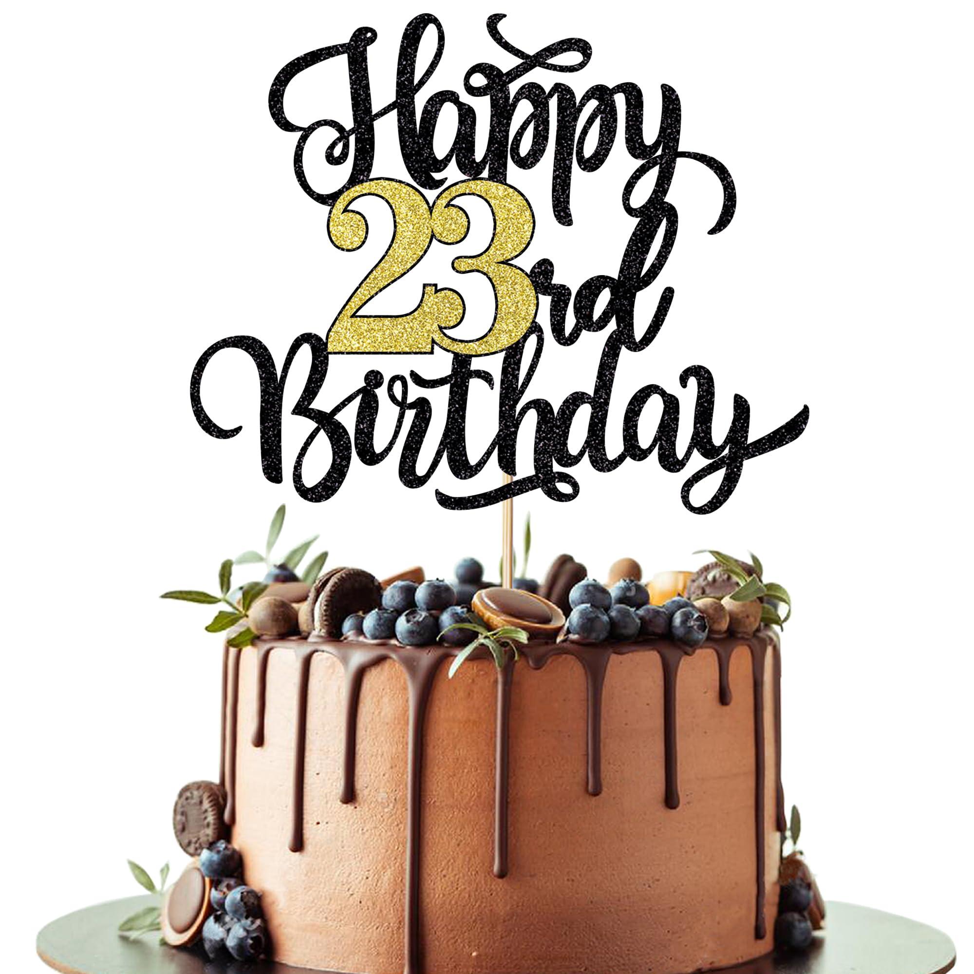 Happy 23rd Birthday Cake Topper, Black Gold Glitter Birthday Cake Topper, 23rd Anniversary/ 23rd Birthday Party Decoration Supplies