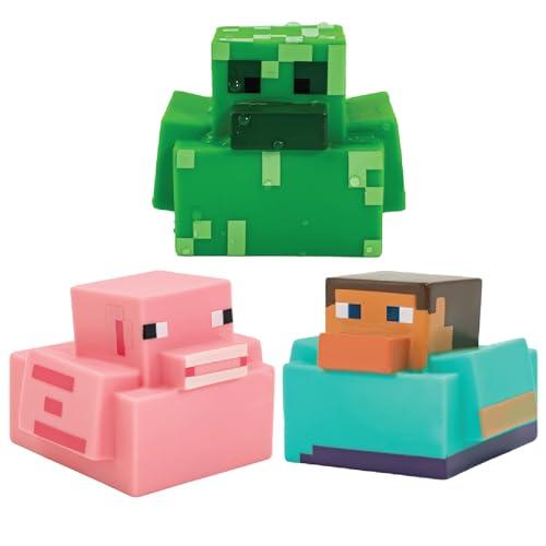 Paladone Minecraft Rubber Duckies, Set of 3 Minecraft Bath Ducks, Creeper Pig and Steve Bath Toys, Funny Jeep Ducks