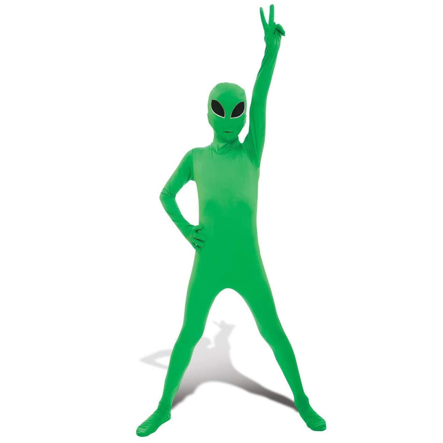 - Alien costume kids include 1 green Morphsuit with glow in the dark stitching around eyes. Our kids Morphsuits come with a quick-release hook and loop hood for easy removal