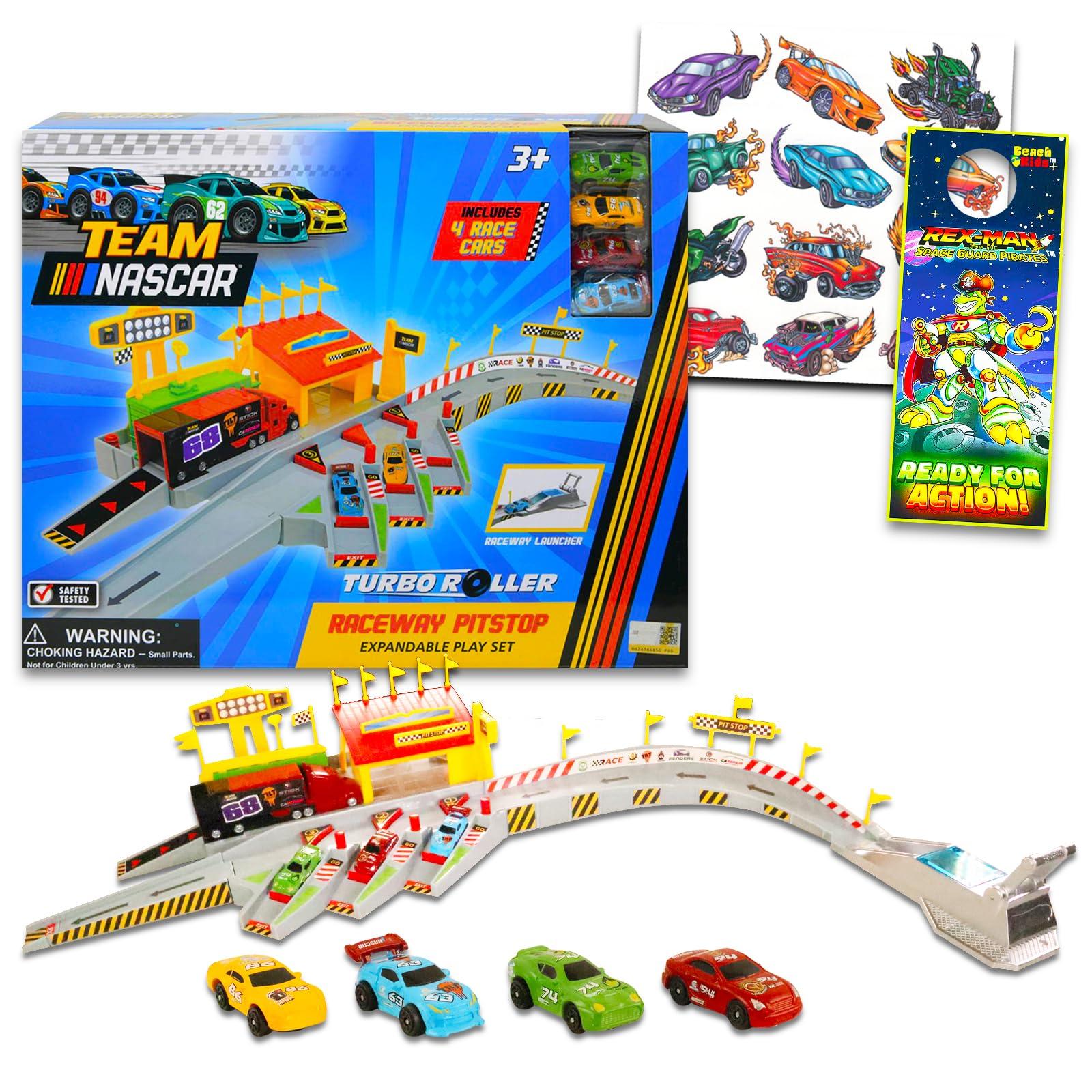 - Nascar Race Track and Toy Car Set - Bundle with Nascar Raceway Pitstop Expandable Play Set with 4 Race Cars Plus Tattoos, More | Nascar Race Track Toys for Boys.