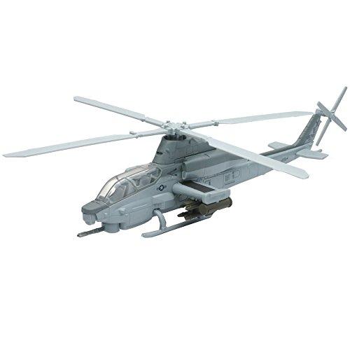 The model from New Ray measures abut 10 inches in length. It is mostly made of metal. The plastic parts would be the wings, weapons and rotor blades. Both rotors can spin freely. The gun at the front can be rotated side to side. The details are nice; the panels along the fuselage are very well defined and accurate. The box measures 13.75 inches long by 4.75 inches high by 4 inches deep. A plastic stand is included. The Bell AH-1Z Viper[3] is a twin-engine attack helicopter based on the AH-1W SuperCobra, that was developed for the United States Marine Corps. The AH-1Z features a four-blade, bearingless, composite main rotor system, uprated transmission, and a new target sighting system.[4] The AH-1Z is part of the H-1 upgrade program. It is also called "Zulu Cobra" in reference to its variant letter. Recommended age is 8 and older.