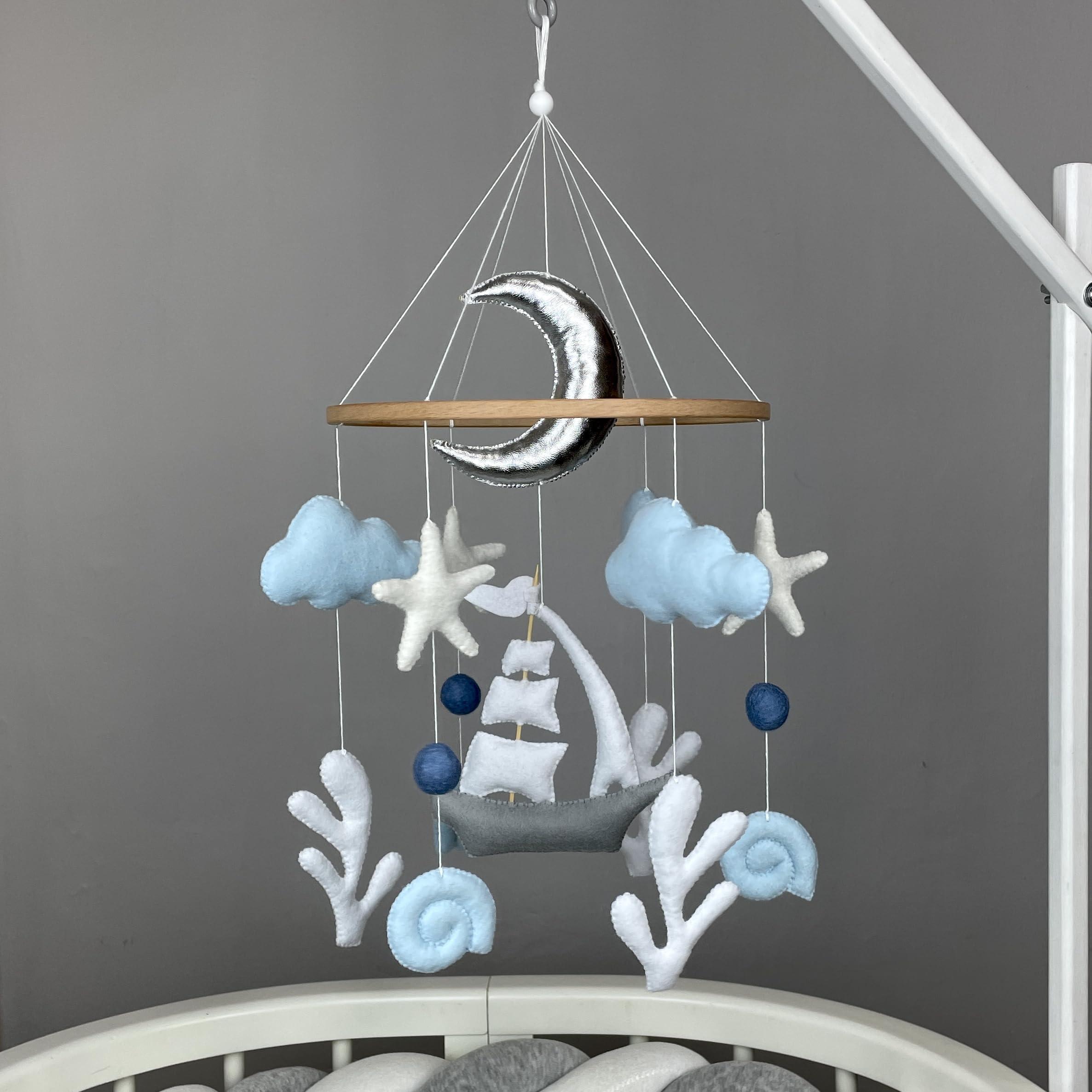 - Felt hanging ocean baby mobile. Original design, made especially for the nautical themed nursery decor. Cute ship will delight your little one. Unique gift for your new baby or for a baby shower