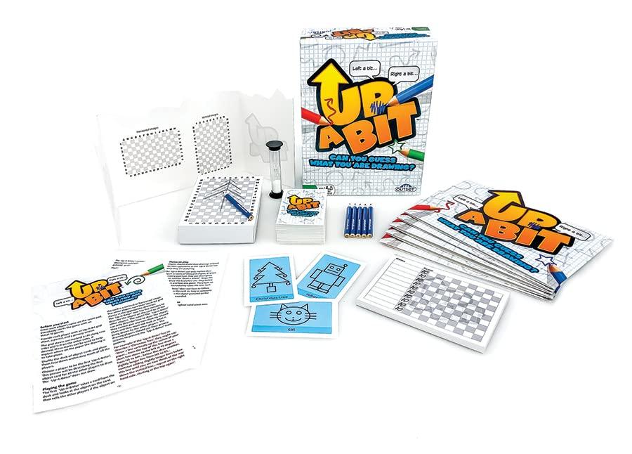 - INCLUDES: 100 Up-A-Bit Object Cards, 250 Double-sided Grid Sheets, Score Pad, 6 Privacy Screens, 6 Pencil, 5-minute Sand Timer and Rules