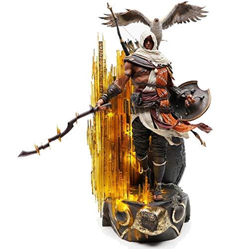 - Bayek of Siwa, co-founder of the Hidden Ones, materializes from the Animus synchronization in this 1:4 scale polyresin statue, alongside his loyal eagle companion, Senu! Feel the strength of this duo amidst the abstract landscape of Egypt. Illuminate the LED lights and transport yourself into the desert with them!