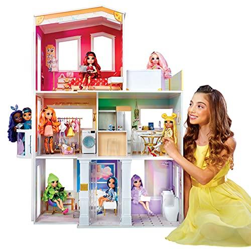 - WOODEN MULTI-STORY HOUSE: The fully furnished Rainbow High House Playset is the place for your Rainbow High fashion dolls to live and make all their creative dreams a reality. This 3-story house playset measures 4 feet tall by 3 feet wide and features 6 rooms, all-angle play, a working elevator, 50plus accessory pieces, a hot tub with working bubble effect and so much more this Rainbow High House inspires creativity and endless play for your child.