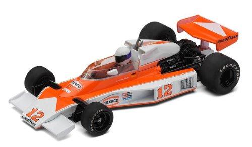 From the Manufacturer\n\nBefore Michael Schumacher, Jochen Maas was Germany\'s most successful F1 driver. Mass raced in 138 Gran Prix\'s between 1973 and 1982, winning the 1975 Spanish GP for McLaren. A beautifully detailed representation of the McLaren M23 car as driven by Jochen Maas in the 1976 F1 season. High Detail. Magnatraction. Quick change braid plate. Motor: Mabuchi FF 18K RPM, gear ratio 9:27. Chassis: Rear Mounted Motor inline, 2 wheel drive. Magnet: Rectangular 2.5 mm, Down-force 150 gm. Overall Length: 135mm. Wheel Base: 83 mm. Axle/Hub Width: 62 mm Front, 70 mm Rear. Tire Diameter: 16(ext), 11 (int), 9 mm Front; 20 (ext), 11(int), 15 mm Rear. Weights: Car: 64 gm Case:156gm.