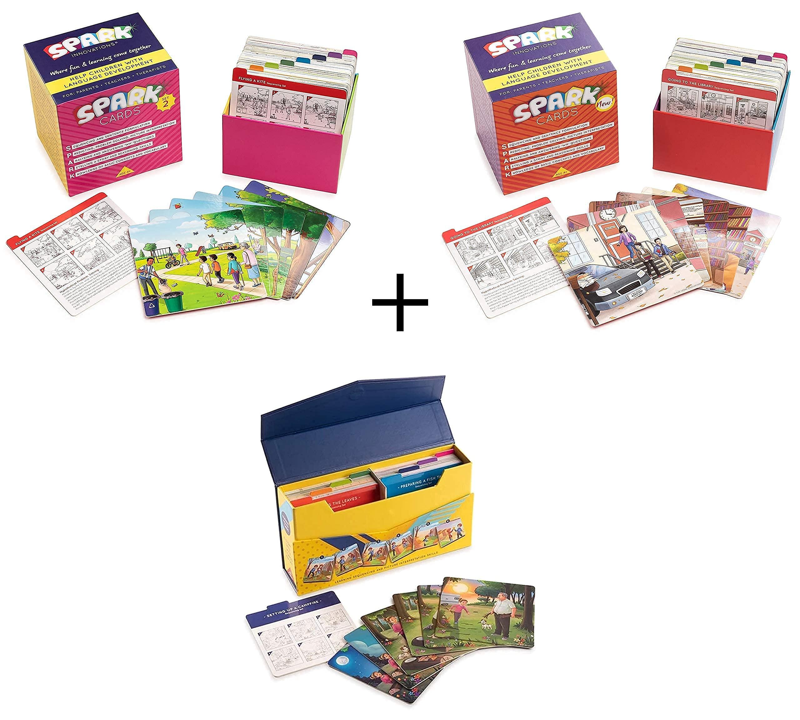 - ADAPTABLE FOR ALL AGES - Spark Cards 1, Spark Cards 2, and Spark Cards JR are a Perfect Speech Therapy Game For Classroom and Center Based Activities, individual therapy sessions, at home with parents and entire family. Skill level of cards is adaptable to many levels by simply trimming or using all the cards in a set. Starting from age 4 Story Cards are Suitable For Kids Of All Ages