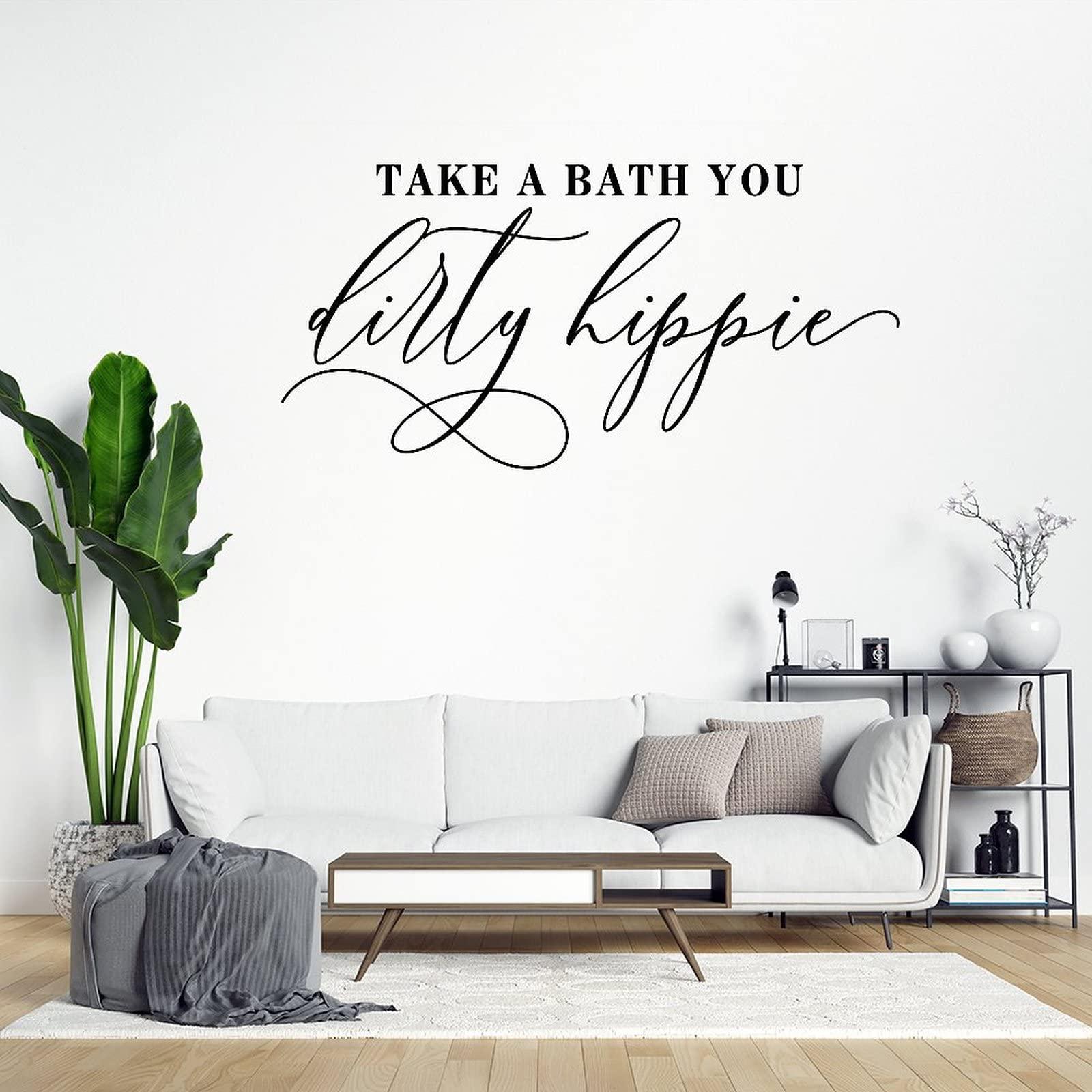 Sticker Decal for Walls Take A Bath You Dirty Hippie, Decor for Bathroom Bathtub Peel and Stick Removable Vinyl Wall Art Motivational Wall Decor for Living Room, Bedroom, Nursery - 29.5"