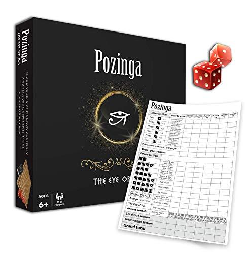 - MAKE EVERY MOVE COUNT Unbox an Egyptian tabletop Yahtzee board game filled with surprises to test your skills. While most dice games are based on chance, Pozinga combines luck with strategy. Be sure tread carefully when plotting your journey through the ancient tomb!