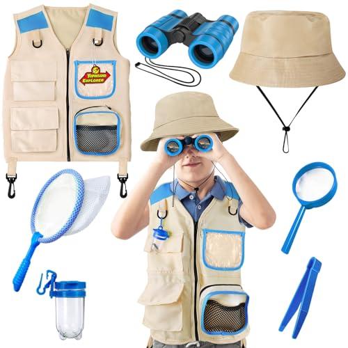 - Everything in One Box: This exploration set will fulfill all your child's needs for outdoor exploration, the explore kit comes with high-quality a Vest, Hat, Binocular, bug Net, Inset Tweezer, Magnifying Glass and Bug Containers. Kids can always bring this gear ready to go and explore the mysteries of nature!